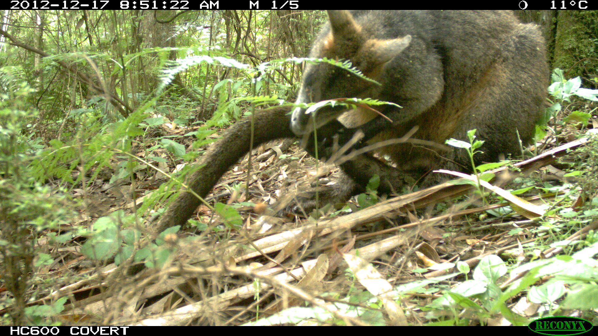 Swamp Wallaby - Grooming its tail.
