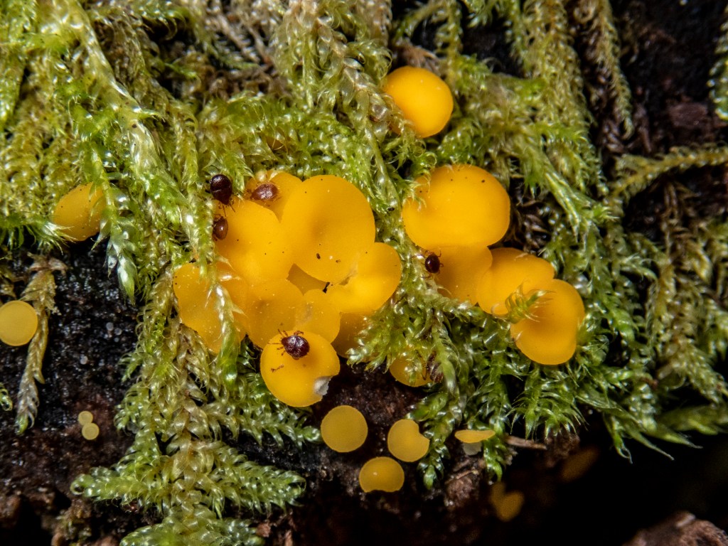 On Saturday 18th of February, Friends of Tarra-Bulga National Park held our annual invertebrate Survey (Bugblitz). Conditions were good with temperatures in the low to mid twenties. About a dozen eager participants were ready to go bug hunting. This included a few members of the Entomological Society of Victoria. They were waiting when I arrived at the Visitor Centre just after 2 pm. I was a few minutes late. The Visitor Centre was a great place to start. While they were waiting, some observant people noticed an abundance of insects. These insects were roosting on the walls and windows. It was unusual to see a hundred or more fresh-looking Geometrid moths. These moths turned out to be a species called Chrysolarentia lucidulata (Lucid moth). Most of them were perched on verandah beams.